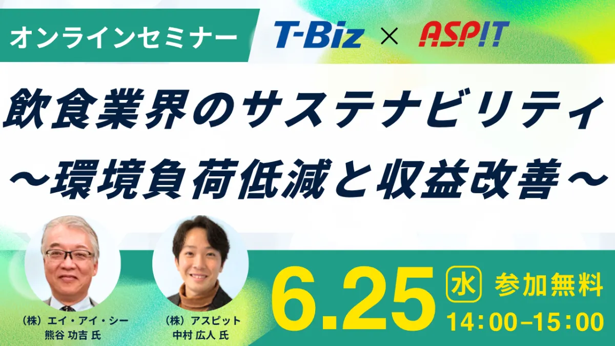 2025年6月25日(水)14:00から15:00までの時間、飲食業界にフォーカスした「サステナブル経営実現のための生ごみ処理・フードロス削減セミナー」がオンラインで行われます。このセミナーは、株式会社アスピットが主催し、環境問題に関心を持つ飲食事業者に向けて設計されており、参加費は無料です。