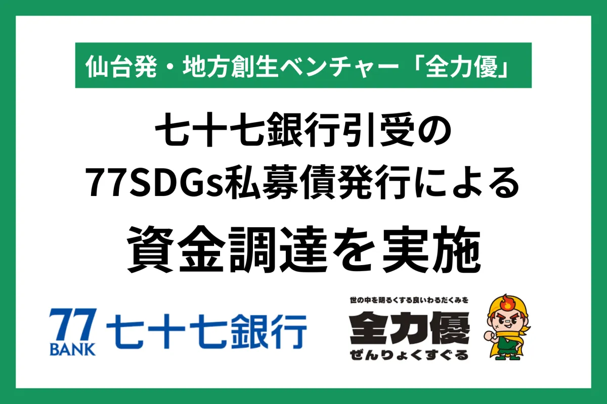 仙台市に拠点を持つ株式会社全力優が、七十七銀行の引受により「77SDGs私募債」を発行し、資金調達を行うことが明らかになりました。この私募債は「寄付型/社会貢献コース」として、発行企業とは別に受領した手数料の一部が、教育機関や福祉法人、地方公共団体へ寄付される仕組みです。全力優は、地域の教育機関への寄付を予定し、次世代人材の育成支援を行います。