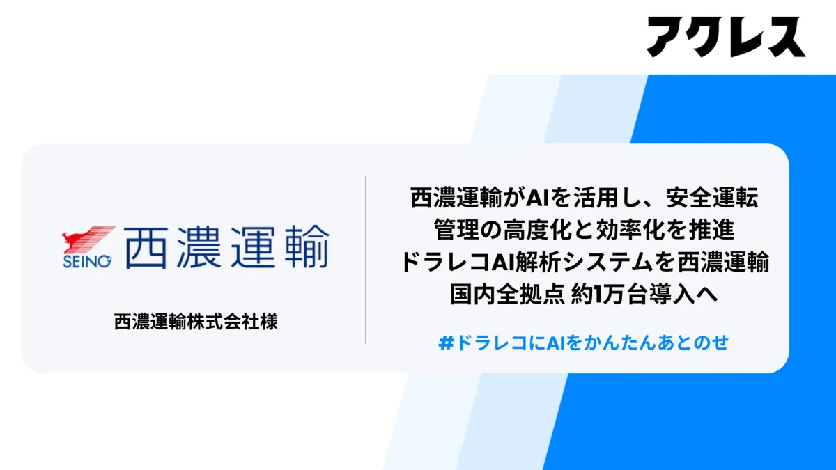 AI技術の導入によって、安全運転管理の効率化と質の向上を謳う西濃運輸。物流業界でのAIの活用は新たな局面を迎えており、「アクレス」によって、より安全な運転環境の構築が進んでいます。今後の展開に目が離せません。