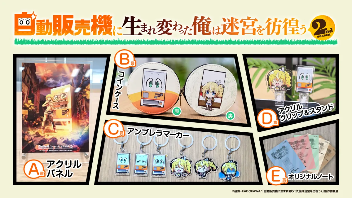 今秋、待望のオンラインくじが『自動販売機に生まれ変わった俺は迷宮を彷徨う2nd season』のファンに向けて販売されます。出典元は株式会社日テレWandsが運営する「FaveConnectストア」です。2025年9月12日から10月31日までの期間限定のこのくじは、アニメの熱心なファンにはたまらないアイテムばかりが揃っています。