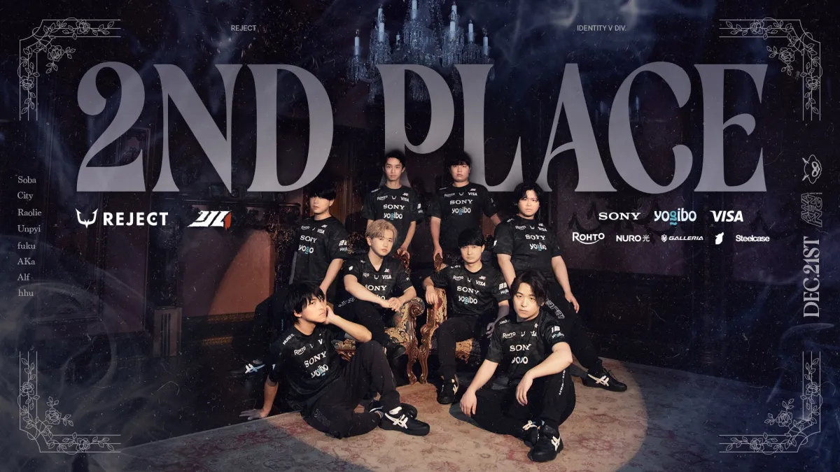 株式会社REJECT(東京都港区、代表取締役:甲山翔也)が運営するeスポーツチーム「REJECT」のIdentityV 第五人格部門が、2025年12月21日に行われた「第五人格 FanMeeting&2025秋季IJL決勝戦」の舞台で準優勝の輝かしい成績を収めました。ここから、さらに成長し、世界大会『Call of the Abyss VIII』への挑戦が始まります。