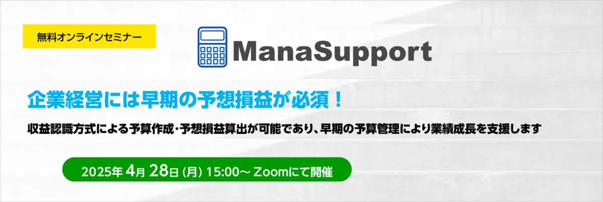 しかし、実際には多くの企業が予想損益の作成や分析、管理に多大な時間や労力を費やしており、特に収益認識基準への対応には課題が山積しています。このオンラインセミナーでは、そんな企業の悩みを解消するための具体的な手法や「ManaSupport」の機能を紹介します。