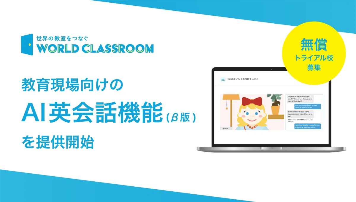 現在、WorldClassroomでは無償トライアル導入校を募集しており、AI英会話機能(β版)も期間限定でお試しいただけます。興味を持たれた教育機関の方は、ぜひお問い合わせを!