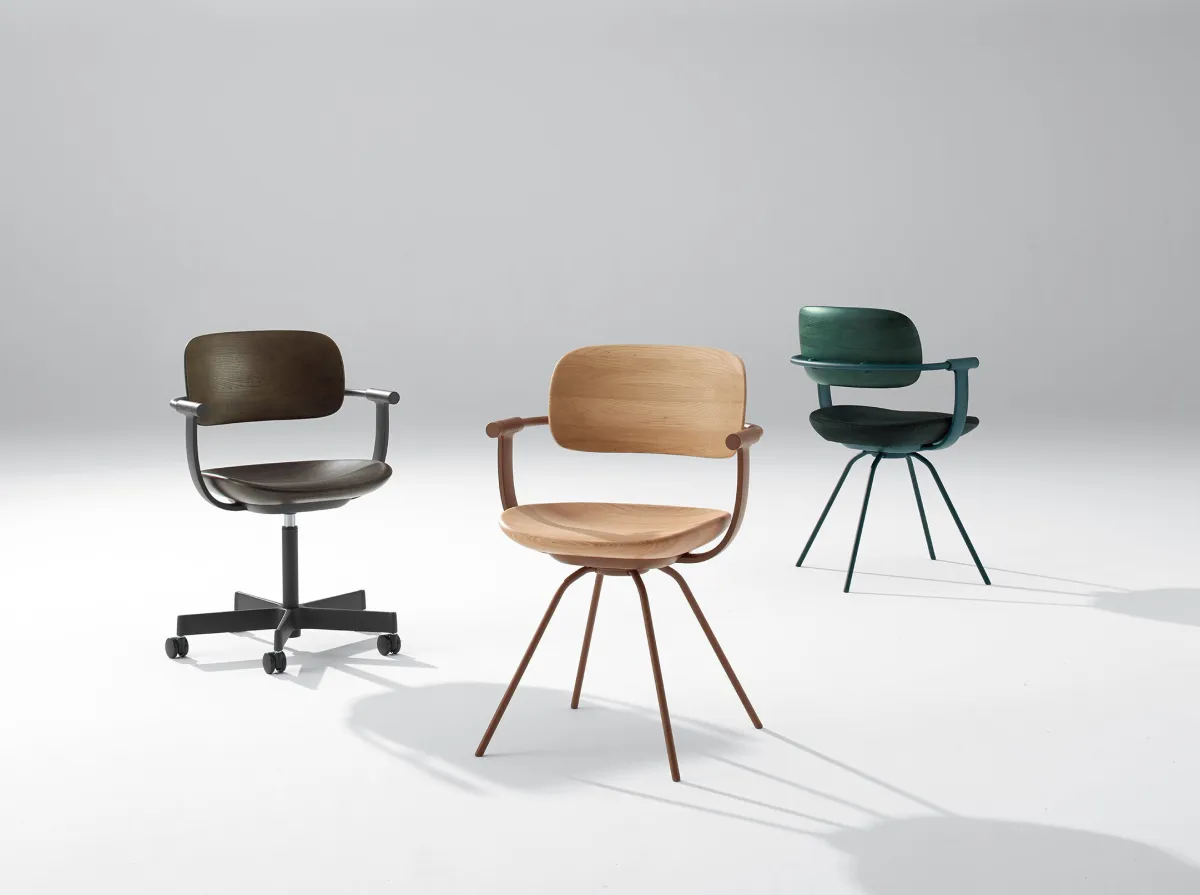 この製品は、イトーキ独自のエルゴノミクスを用いたオフィスチェアです。クリの無垢材を使用した背もたれとシートは、伝統的な木工の技術を活かしており、カリモク家具が製作を手がけています。木材の特性を活かすことに加え、利用者の座り心地に配慮したデザインが施されています。無滑り加工された座面や、色合いに工夫が施された塗装技術も特徴的です。