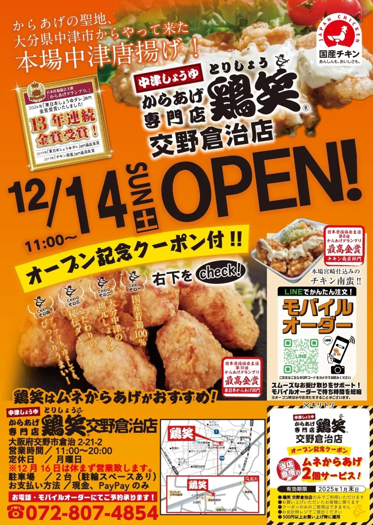 大阪府交野市に新たなる美味しさ、鶏笑交野倉治店が登場!