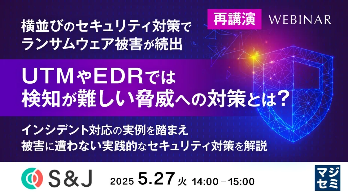 最近、ランサムウェアの脅威がますます増加している中、本セミナー「横並びのセキュリティ対策でランサムウェア被害が続出 UTMやEDRでは検知が難しい脅威への対策とは?」を再度開催いたします。このセミナーは、2025年3月に行われるものと同じ内容の講演で、多くの要望により再び開催されることになりました。