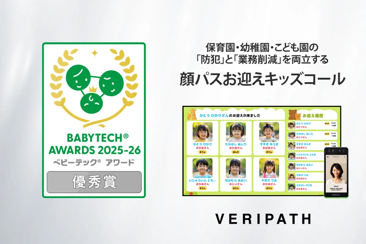 保育園や幼稚園、こども園での安全性を高めるために開発された顔認証お迎えシステム『KIDSCALL』が、国内最大級の保育テックアワード「BabyTech® Awards 2025-26」にて優秀賞を受賞しました。この受賞は、保育業界における先進性や社会貢献度が評価された結果です。