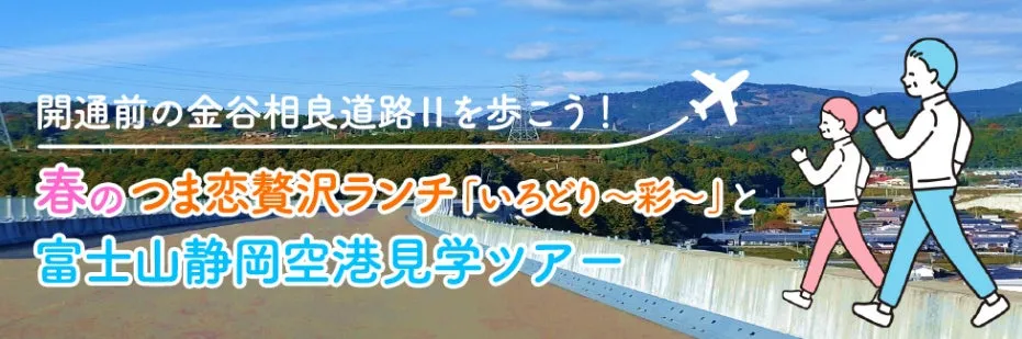 2025年3月29日(土)の開通を控えている金谷相良道路II(国道473号バイパス)を体験できる特別な見学ツアーが、静岡県掛川市の【つま恋リゾート彩の郷】で開催されます。春の陽気に包まれたこの日、参加者は開通前にしか歩けない貴重な区間を散策し、静岡の豊かな食文化を楽しむ贅沢なランチ、そして普段は立ち入れない富士山静岡空港を見学することができます。