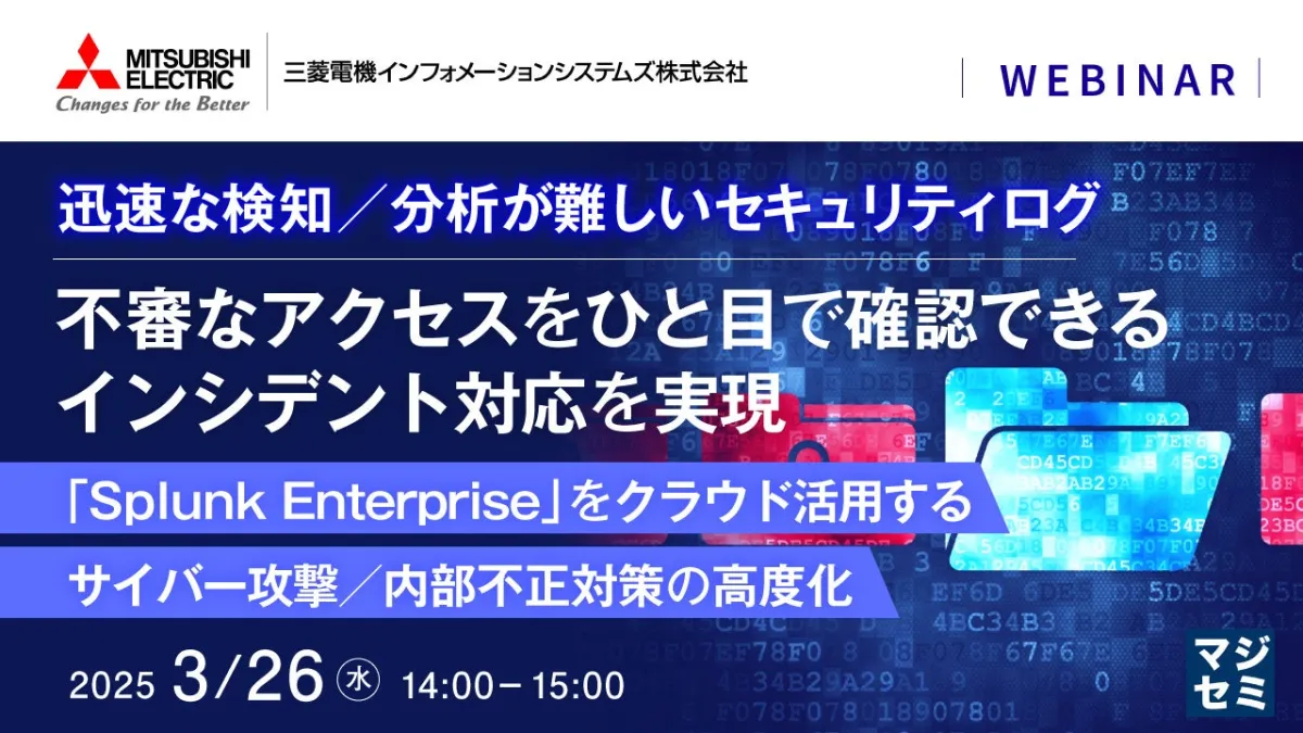 この度、三菱電機インフォメーションシステムズが主催するウェビナーでは、セキュリティログのリアルタイム監視やインシデント検知・分析の重要性について学ぶことができます。本セミナーは、特に自社のセキュリティレベルを向上させたいと考えている企業のセキュリティ担当者や運用部門の方々を対象としています。