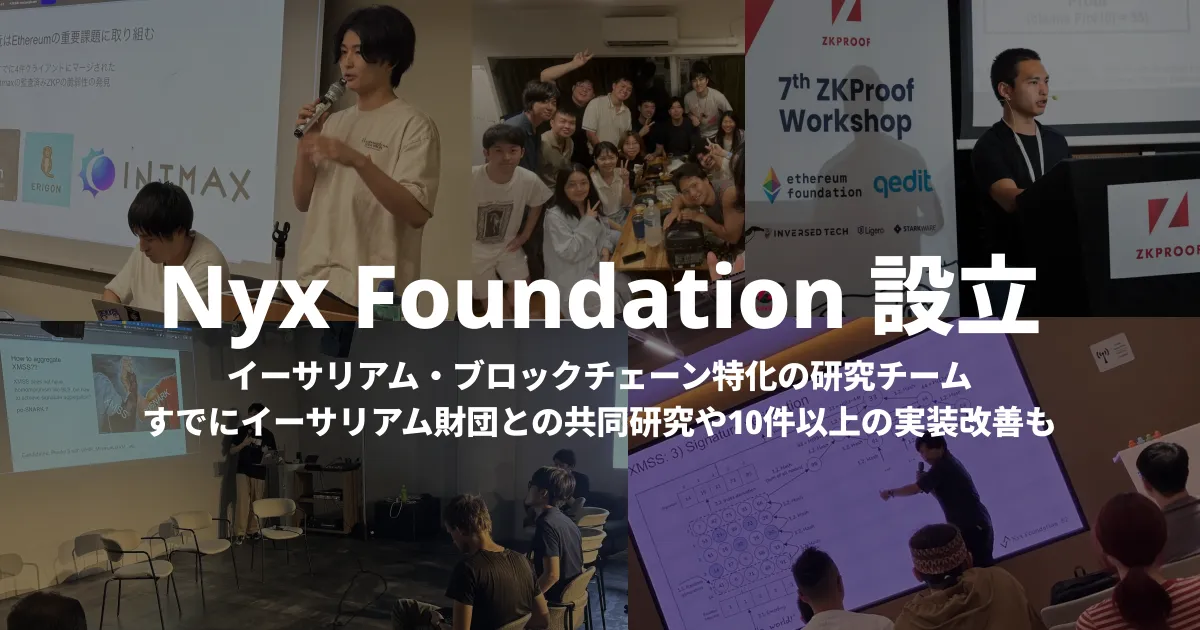 Nyx Foundationはオープンな研究と開発を通じて、イーサリアムを信頼できる社会基盤に近づけることを目指しています。この基盤が実現すると、誰もが公平なルールの下で新しい価値を探求し、創造できる環境が整います。興味を持たれた方はぜひお問合せください。