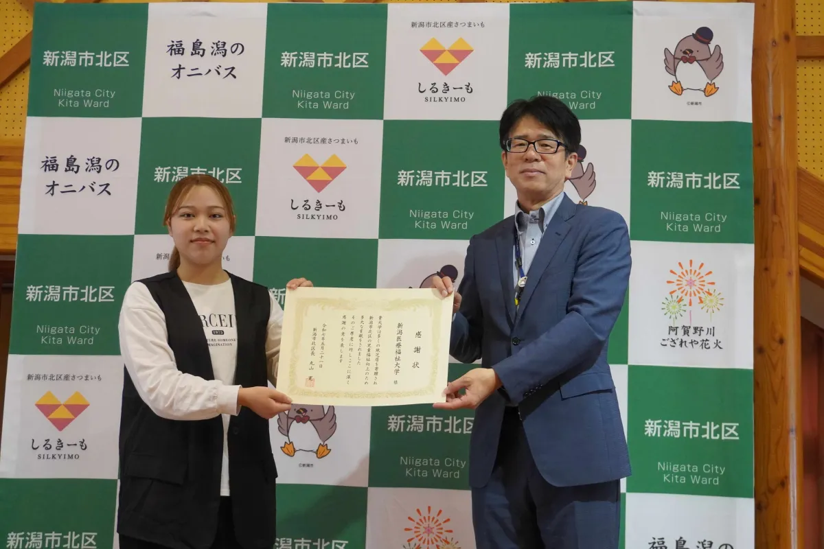 5月21日、新潟医療福祉大学は、「ネコピンチプロジェクト」を通じて作成したオリジナル紙芝居を新潟市北区の27の保育園・こども園に寄贈しました。このプロジェクトは、学生自身が手作りの雑貨「ネコピンチ」を販売し、その収益を地域貢献に役立てる活動です。学生たちはこの取り組みの一環として、企画から制作、寄贈までを行いました。