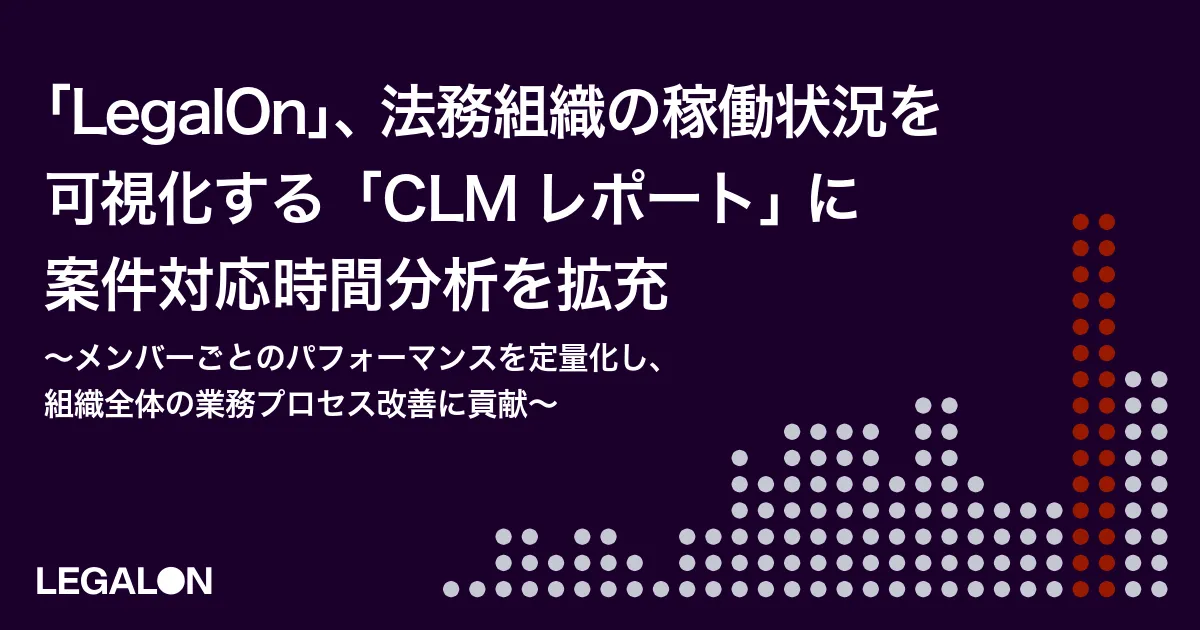 株式会社LegalOn Technologiesが提供する「LegalOn」は、法務特化型AIエージェントを搭載したProfessional AIです。最新のアップデートとして、法務組織の活動状況を視覚化する「CLMレポート」の機能が強化され、案件対応時間の分析が可能になりました。この強化により、法務チームの業務効率が一層高まることが期待されています。
