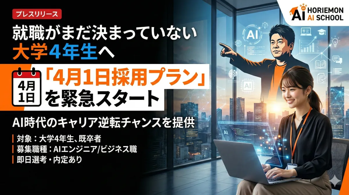 2026年には多くの新卒者が巣立つ中、特に就職が決まっていない大学4年生には不安が広がっているかもしれません。そんな彼らを支援するべく、ホリエモンAI学校株式会社が「4月1日営業採用プラン」を発表しました。このプランは、特に企業教育を行う同校が提供する新しい採用枠であり、学生にとって大きなチャンスとなります。