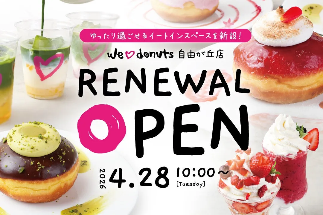 2026年4月28日、株式会社サンパークが運営する『we♡donuts(ウィーラブドーナツ)』自由が丘店がリニューアルオープンしました。この店舗は、来るお客さまにさらに快適な空間を提供するため、大幅にアップグレードされています。