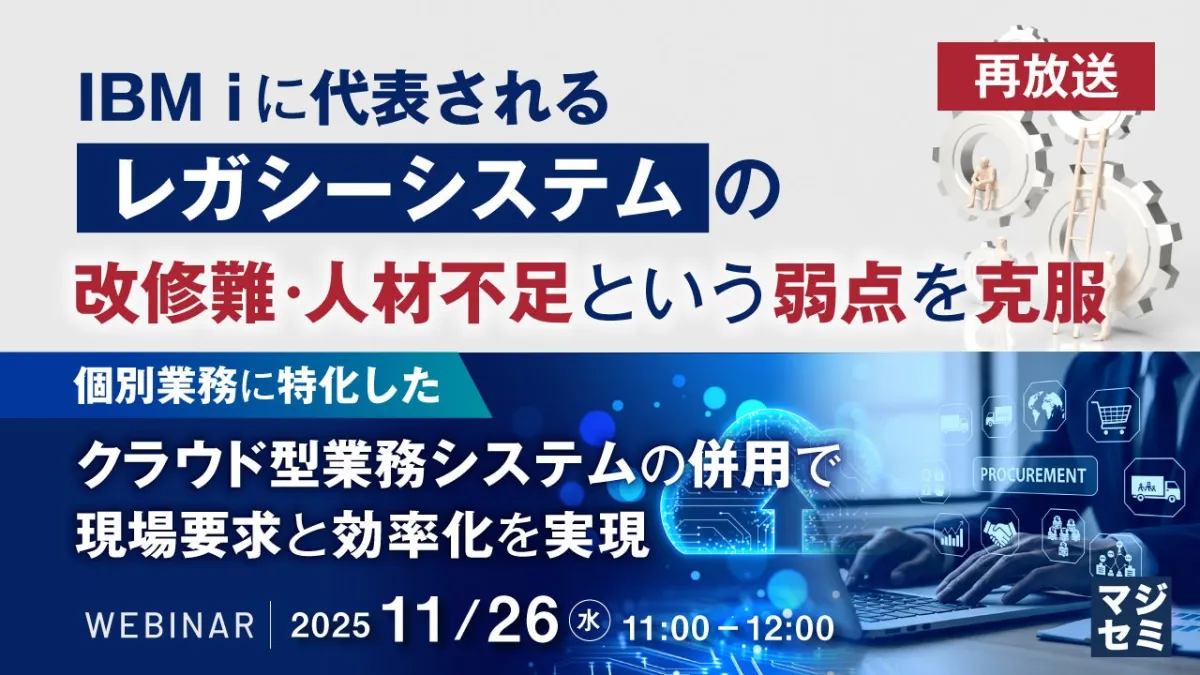 今回開催されるウェビナーでは、IBM iユーザーが直面している改修の難しさや人材不足、手作業依存といった問題を掘り下げていきます。そして、従来のレガシーシステムを何とか改修することなく、フロント側で受発注業務を効率化する具体的な方法を紹介する予定です。