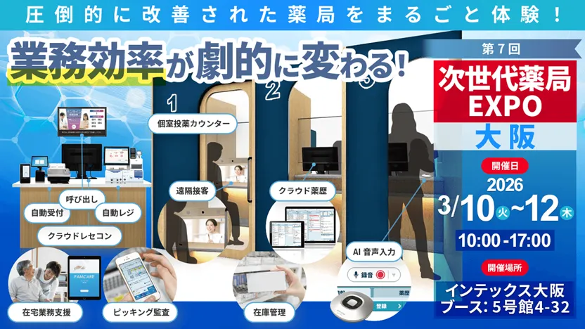 株式会社ソラミチシステムが主催する「第7回 次世代薬局EXPO 大阪」が、2026年3月10日(火)から12日(木)の間、インテックス大阪で開催されます。この展示会では、医療や介護、ヘルスケアに関連する最新の製品やサービスが一堂に集結し、特に薬局やドラッグストアの業務効率化に役立つ情報が提供されます。
