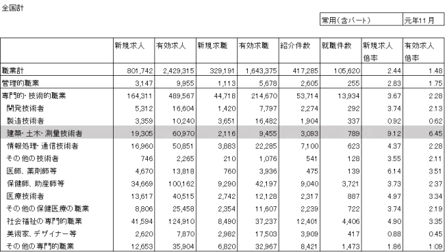 近年、転職市場が活発化している一方で、国内の労働人口が減少していることにより、多くの企業が人材の確保に苦慮しています。2019年11月のデータによると、有効求人倍率は1.57倍であり、特に建築業界においては6.45倍という高い数値を記録しています。このことからも、建築業界での人材不足は深刻な問題と言えるでしょう。