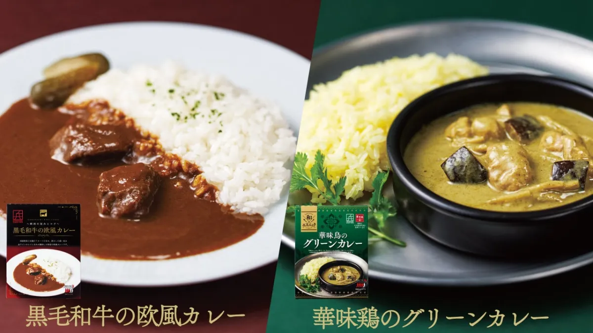 「黒毛和牛の欧風カレー」と「華味鶏のグリーンカレー」は、味の兵四郎の人気商品である濃縮した液体あご入りだしや九州産の柚子の柚子こしょうなどを使い、奥深い味わいに仕上げられています。