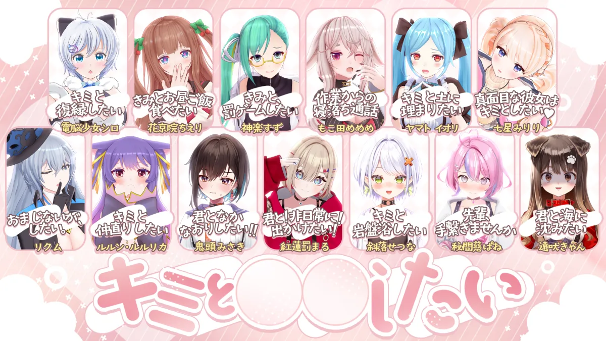今回販売される『キミと〇〇したい』ボイスは、各キャラクターが独自のテーマに基づいて音声を録音し、リスナーにはまるで彼らと一緒にいるかのような体験を提供します。参加メンバーには、電脳少女シロや花京院ちえりなどが名を連ね、各々が描くシチュエーションはインパクトと楽しさ満載です。
