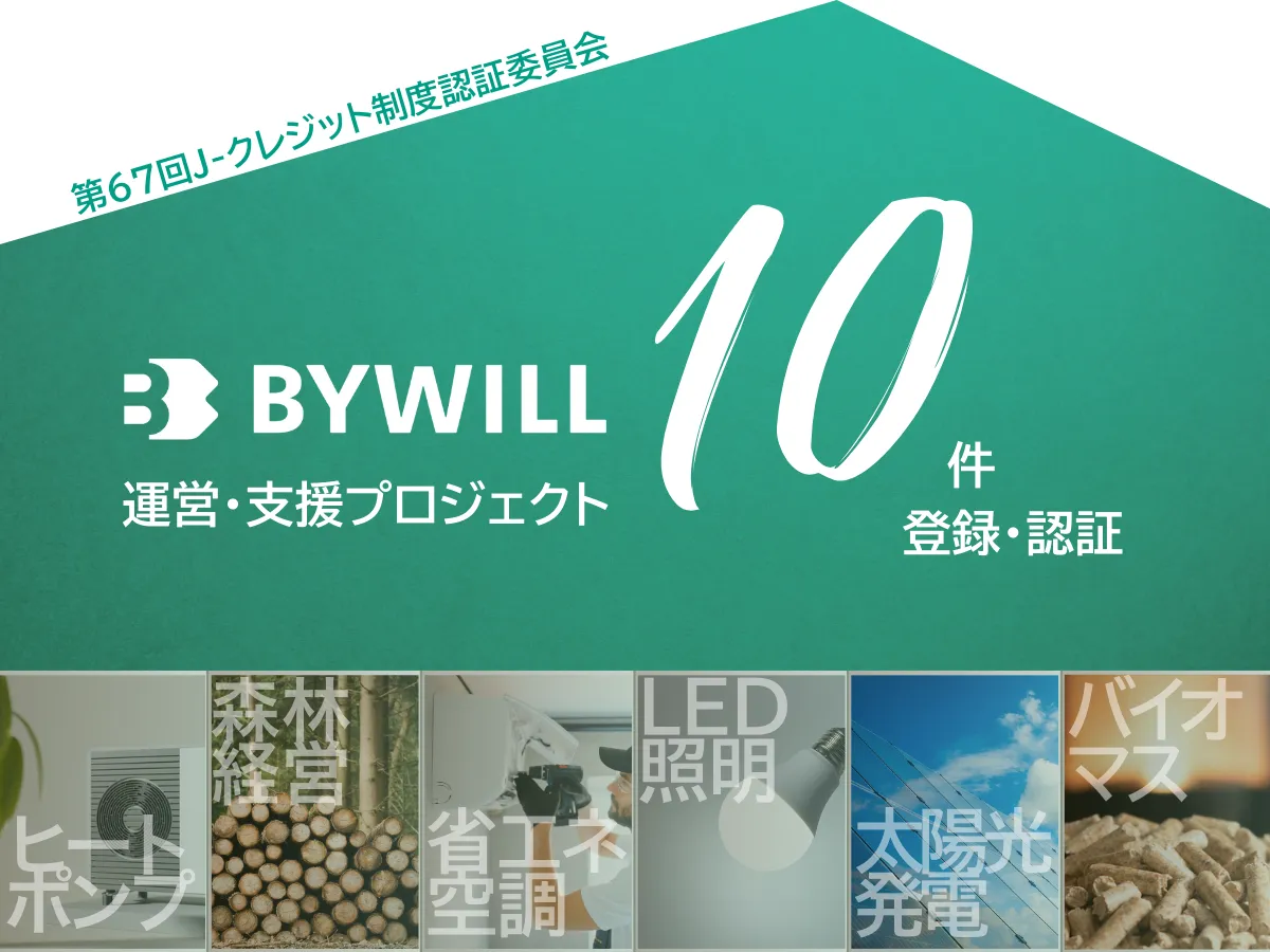 今回の委員会の結果では、バイウィルが支援または運営するプロジェクトとして、合計で6件が登録され、そのうち4件がJ-クレジット認証を受けました。