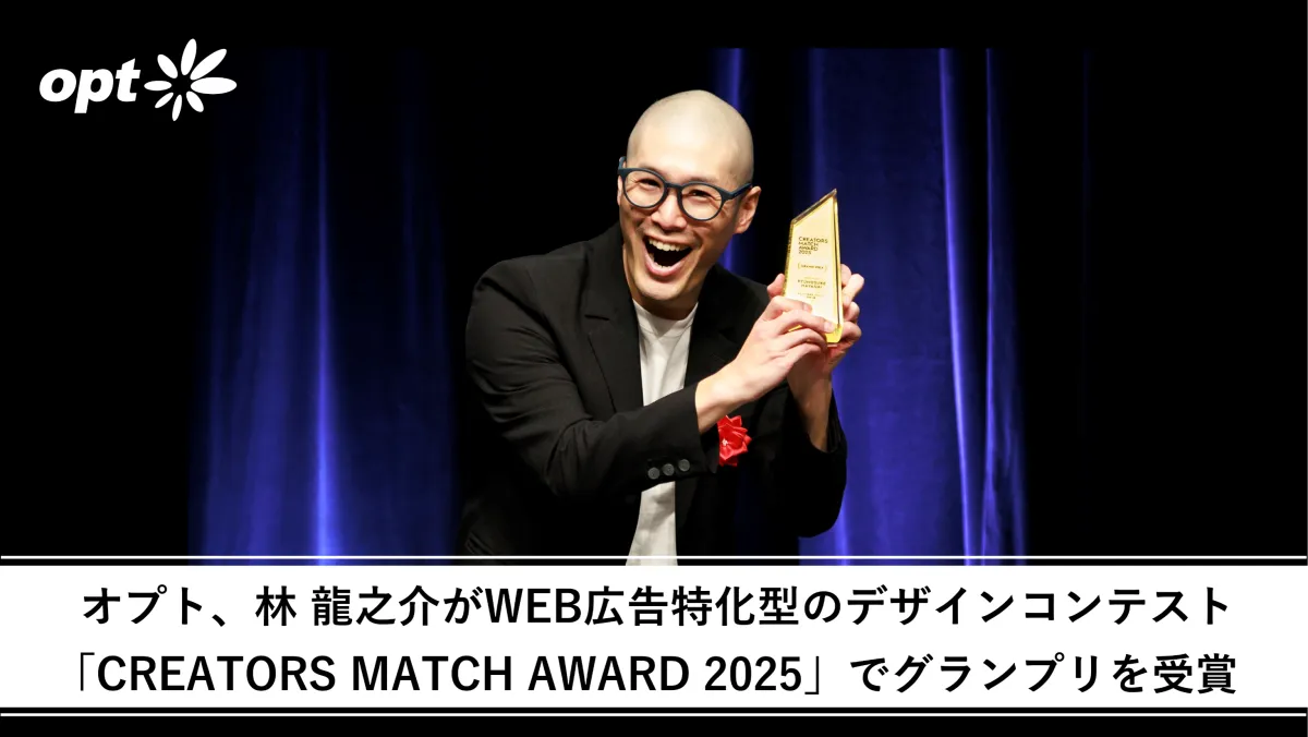 株式会社オプトのAIクリエイティブセンターに所属する林龍之介氏が、ウェブ広告特化型のデザインコンテスト「CREATORS MATCH AWARD 2025」においてグランプリを受賞しました。このアワードは、ウェブ広告業界に新しい価値をもたらすことを目的としたもので、過去526点の応募作品の中から選ばれた受賞作は、業界内外での注目を集めています。