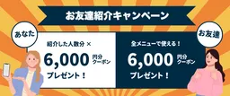 - - お友達の初回訪問完了後、2,000円分のクーポンを3回、合計6,000円相当を進呈
