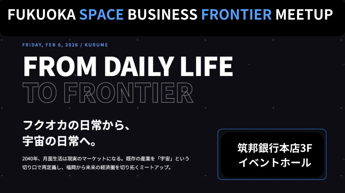 福岡県久留米市で2026年2月6日、株式会社Space Food Lab.主催による「FUKUOKA SPACE LIVING FRONTIER MEETUP」が開催されました。約90名の参加者が集まり、地域の既存産業が宇宙をテーマに自社の技術や資源を再評価する機会を得ました。