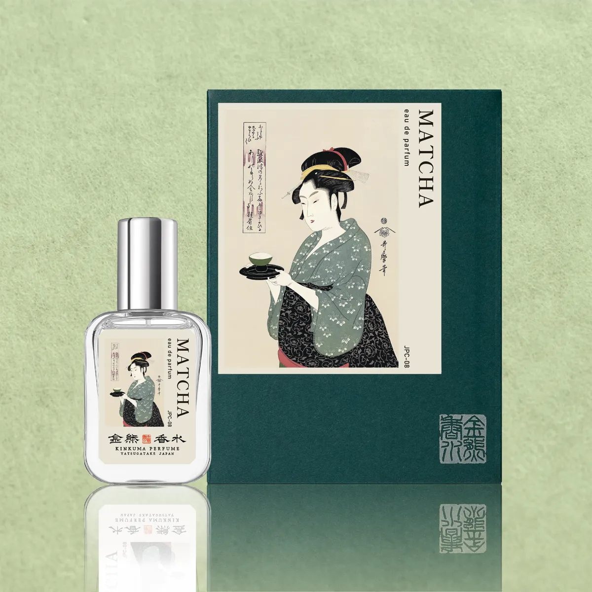 金熊香水は、八ヶ岳南麓の自然に囲まれた環境で、厳選された素材を用いて香水を製造しています。ここで生まれる香りは、日本の気候や風土に調和した、優しさと柔らかさに満ちたものです。「08 MATCHA」もまた、日常生活の中で気軽に使用できるように制作されました。