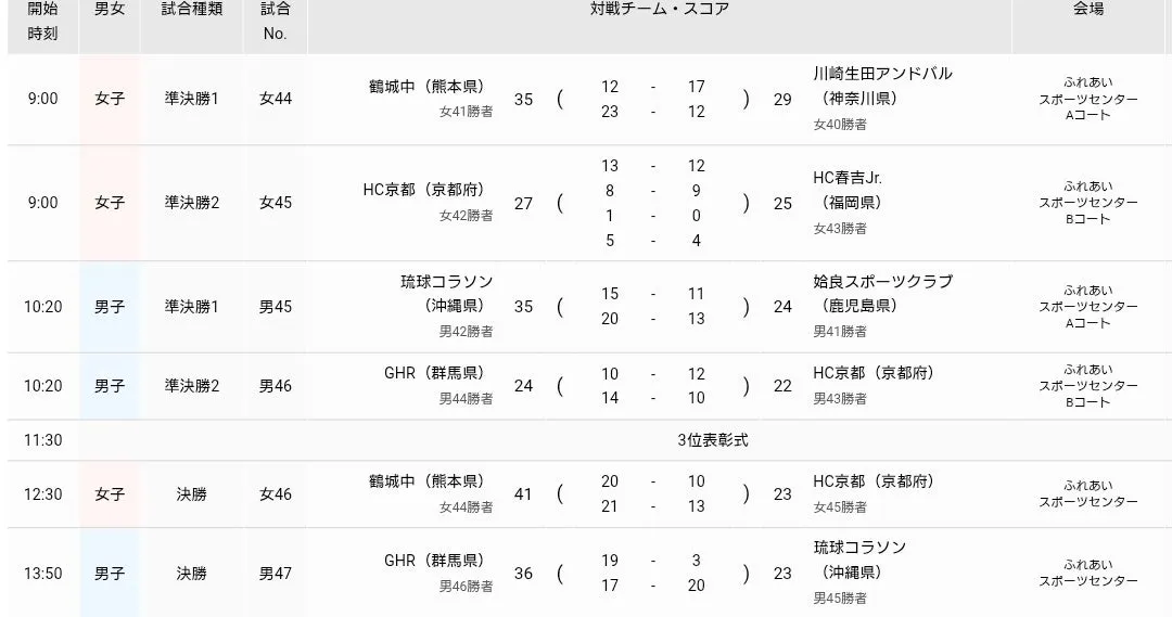 男子部門では、琉球コラソンU-15(沖縄)とGHR(群馬)が決勝に進出。両チームはそれぞれの試合を勝ち抜き、九州対決と関東対決で注目を集めました。決勝戦は、GHRが早々から試合の流れをつかみ、前半戦でなんと19-3という大差でリードを奪いました。