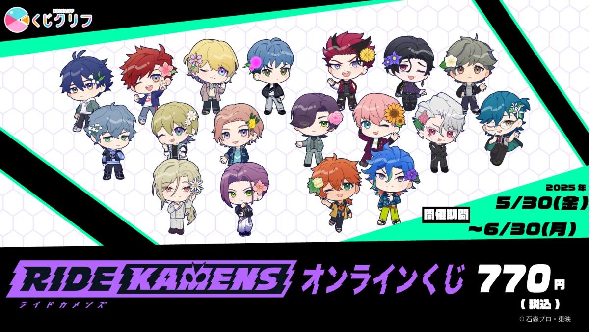 株式会社サトクリフが運営するオンラインくじサービス「くじクリフ」より、人気キャラクター『ライドカメンズ』のオリジナルイラストを使用したオンラインくじが、2025年5月30日(金)の10:00に販売開始されることが発表されました。このくじは、特別なデザインのアイテムを手に入れるチャンスとして注目を集めています。
