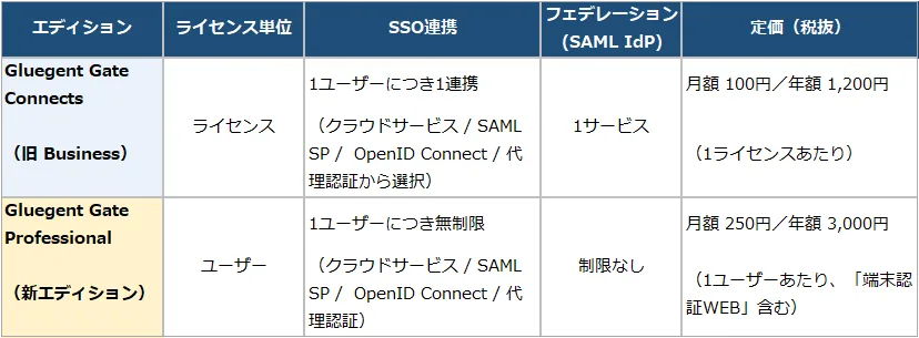「Gluegent Gate Professional」は2026年5月1日から提供され、「Gluegent Gate Business」は同日より「Gluegent Gate Connects」へ徐々に名称変更されます。既存のユーザー企業へのアップグレード支援も行い、円滑な移行を目指します。