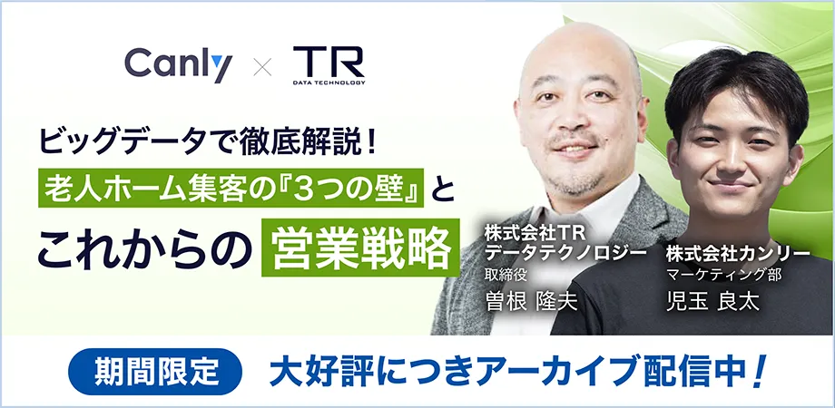 このような背景を受けて、株式会社カンリーが開催する無料セミナー「ビッグデータで徹底解説!老人ホーム集客の『3つの壁』とこれからの営業戦略」が注目を集めています。このセミナーでは、ビッグデータを活用し、老人ホーム集客に直面する「3つの壁」を可視化し、効果的な営業戦略と注目のWEB施策について詳しく紹介します。