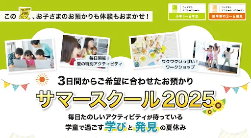 ウィズダムアカデミーは、子どもたちが新しいことに挑戦することをサポートし、自信を持って成長できる環境を整えています。この夏、大切な成長の時間を一緒に過ごしてみませんか。皆様のご参加を心よりお待ちしています。