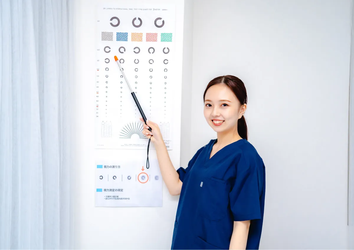 アイチェック - 施術前に視力検査を実施。