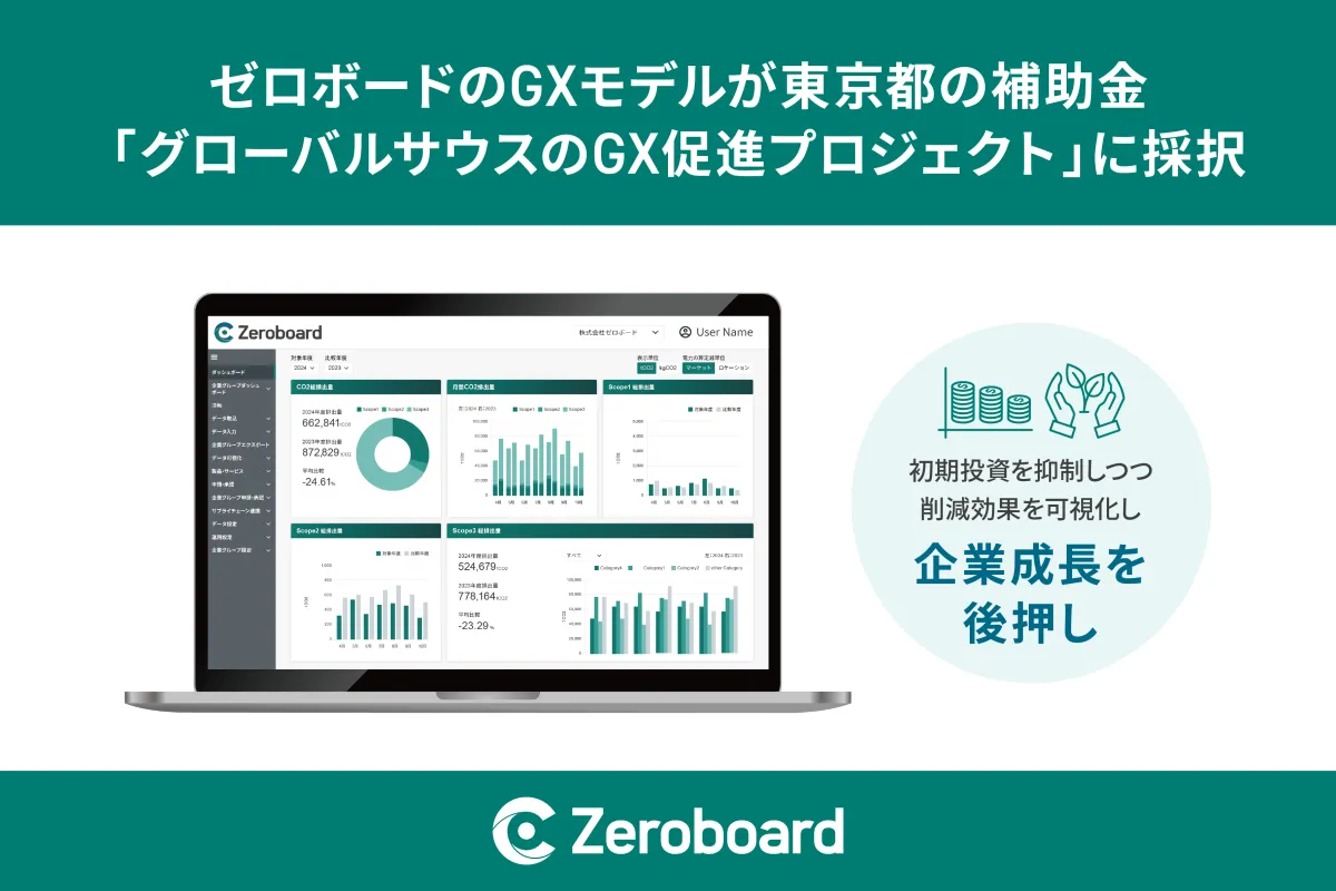 株式会社ゼロボードが東京都の補助事業「グローバルサウスのGX促進プロジェクト」に採択された。これはタイ工業団地における「SPCファイナンスを活用したGX導入支援事業」であり、2025年から2028年までの期間で実施される。