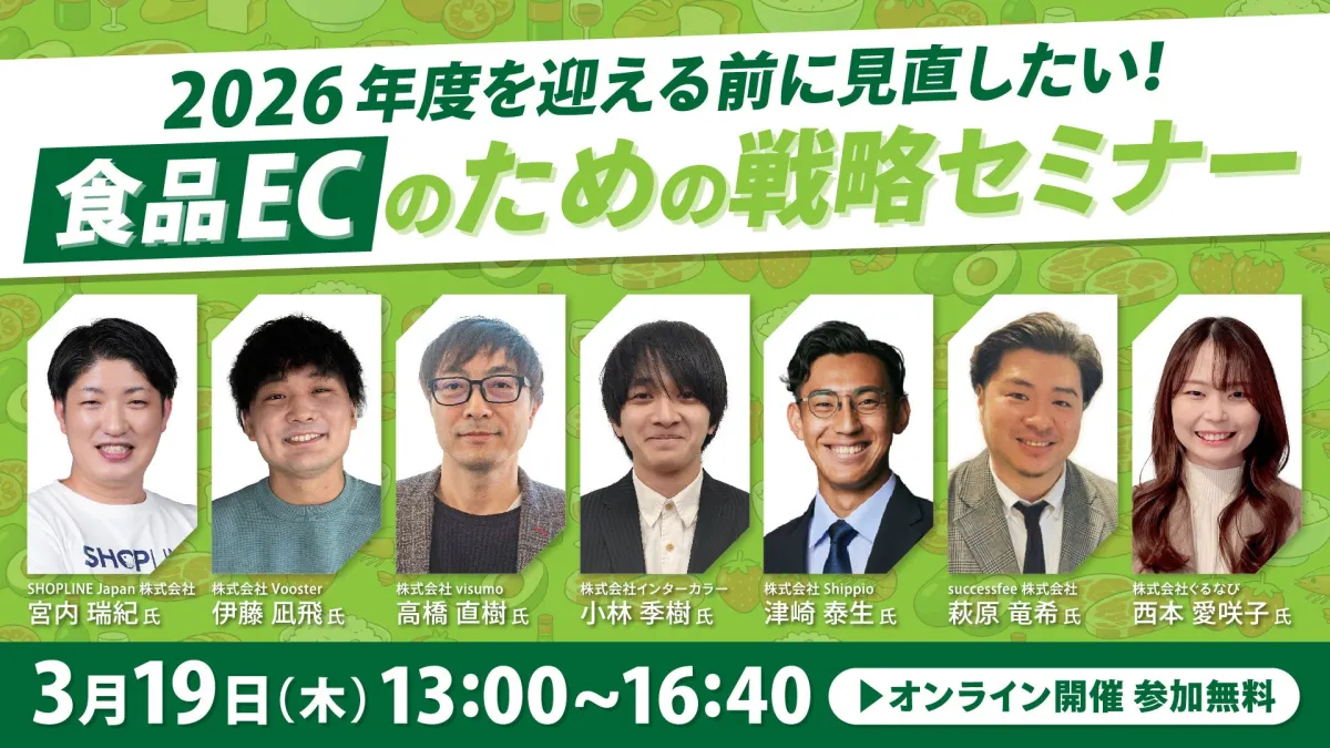 2026年3月19日、株式会社Voosterが主催する「食品ECのための戦略セミナー」が開催されます。このセミナーはオンラインで行われ、参加は完全に無料です。食品EC市場は急速な成長を遂げていますが、その一方で多くの企業が集客や利益の確保に苦しんでいます。本セミナーでは、その解決策として「販路拡大」「顧客体験の向上」「バックヤードの効率化」の3つの側面にフォーカスを当て、業界の専門家たちが具体的な戦略を紹介します。