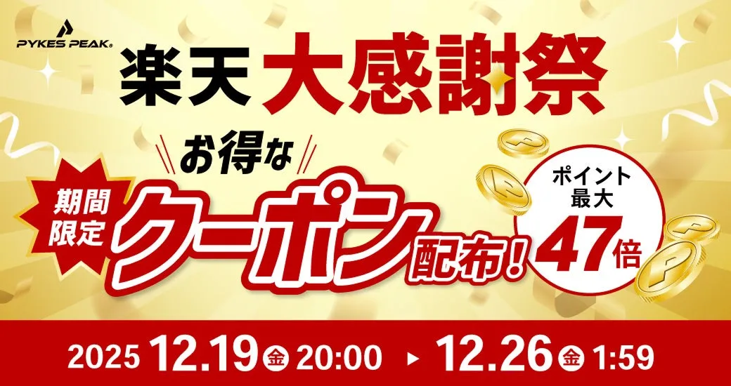 アウトドアやライフスタイルを楽しむ皆さんに朗報です。Fun Standard株式会社が展開するブランドPYKES PEAK(パイクスピーク)が、楽天市場で実施される『楽天大感謝祭』にて、対象商品が最大5000円OFFとなる特別セールを開催します。このセールは、12月19日(金)の20:00から、12月26日(金)の01:59までの期間、PYKES PEAK楽天市場店にて行われる予定です。