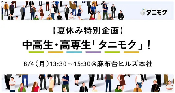 - - 名称:【夏休み特別企画】中学生・高校生・高専生向け「夢」「やりたいこと」応援タニモク