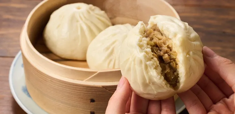いかを原料としたいしるの旨味と豚肉のコクが融合した肉まんで、国産豚肉の肉汁と共に奥深い味わいを楽しめます。