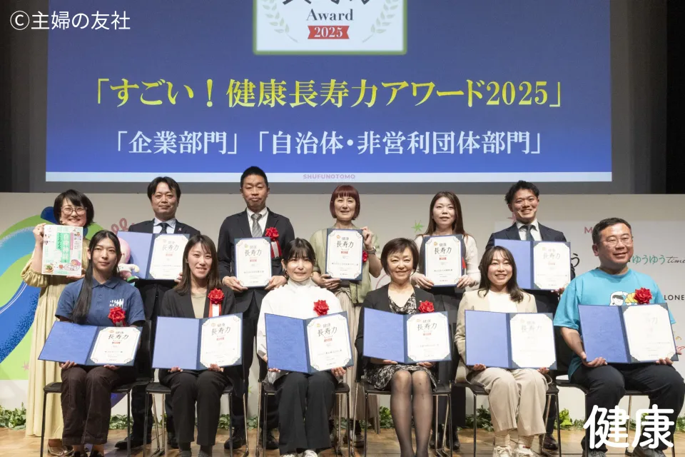 「すごい!健康長寿力アワード」は、株式会社主婦の友社の雑誌「健康」の創刊50周年を記念して設立されました。表彰は企業部門、自治体・非営利団体部門、そして健康寿命を延ばす貢献をした個人部門の3部門に分かれて行われます。受賞者は、読者の投票や医師・専門家の意見をもとに選定され、今年度は14の団体と2名が受賞の栄誉に輝きました。