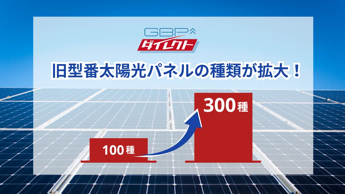 GBPダイレクトが旧型太陽光パネルを300種類に拡充