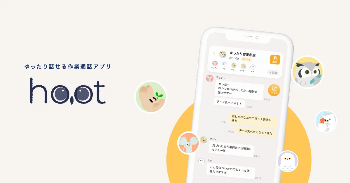 作業通話アプリ「hoot」は、音質とデザインにこだわり抜かれた中で、新しいクリエイティブな共同作業の場を提供します。いつでもどこでも、自分の「おうち」で友達や同僚とつながり、素晴らしいアイデアを共同で生み出していきましょう。詳細やダウンロードは公式サイトからアクセスしてください!