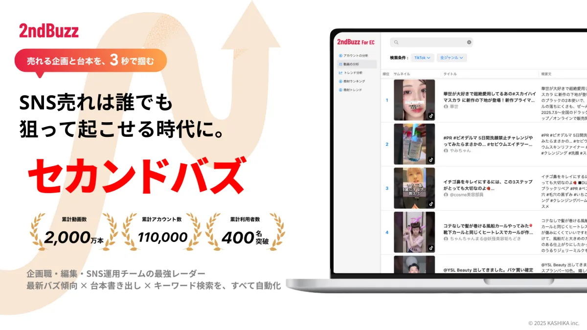 最近のEC市場では、SNSの影響力が急激に増しており、特にTikTokやYouTube Shortsなどのショート動画プラットフォームが中心です。消費者の購買行動に大きな影響を与えるこれらのプラットフォームにおいて、今、最も売れている商材を正確に理解することは、EC事業者にとって至上命題です。株式会社KASHIKAは、このニーズに応えるべく新たに「商材トレンド機能」を2025年9月26日にリリースしました。この機能を使えば、利用者はリアルタイムでトレンド商材のランキングを把握できます。