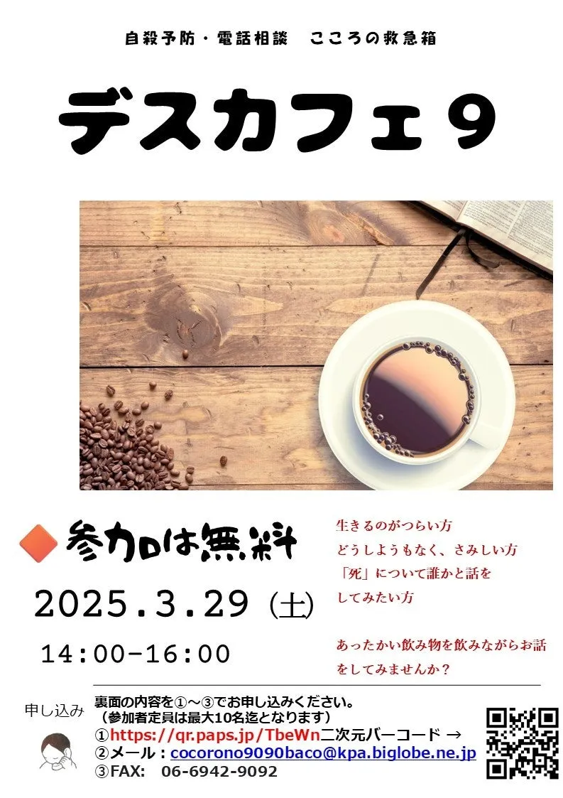 第9回目を迎えるデスカフェが、参加者を募る形で行われます。デスカフェとは、主に「死」というテーマに焦点を当てて、人々が自由に語り合う場です。このイベントでは、集合型やオンラインなど、さまざまな形式が用意されており、多種多様な参加方法が可能です。特に参加費は無料ですので、気軽に参加していただけます。