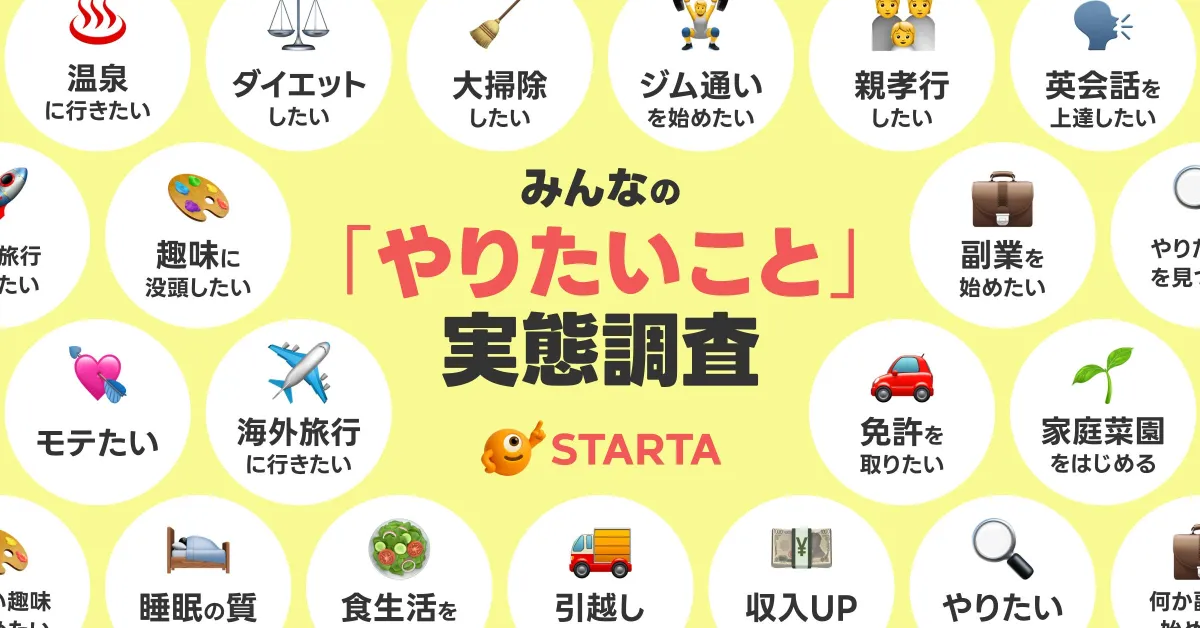 さらに、STARTAが目指しているのは、やりたいことを実現できる社会の実現です。調査結果からもわかるように、多くの人が抱く「やりたいこと」を行動に繋げるためのサポートが求められており、試す価値のあるアプリです。