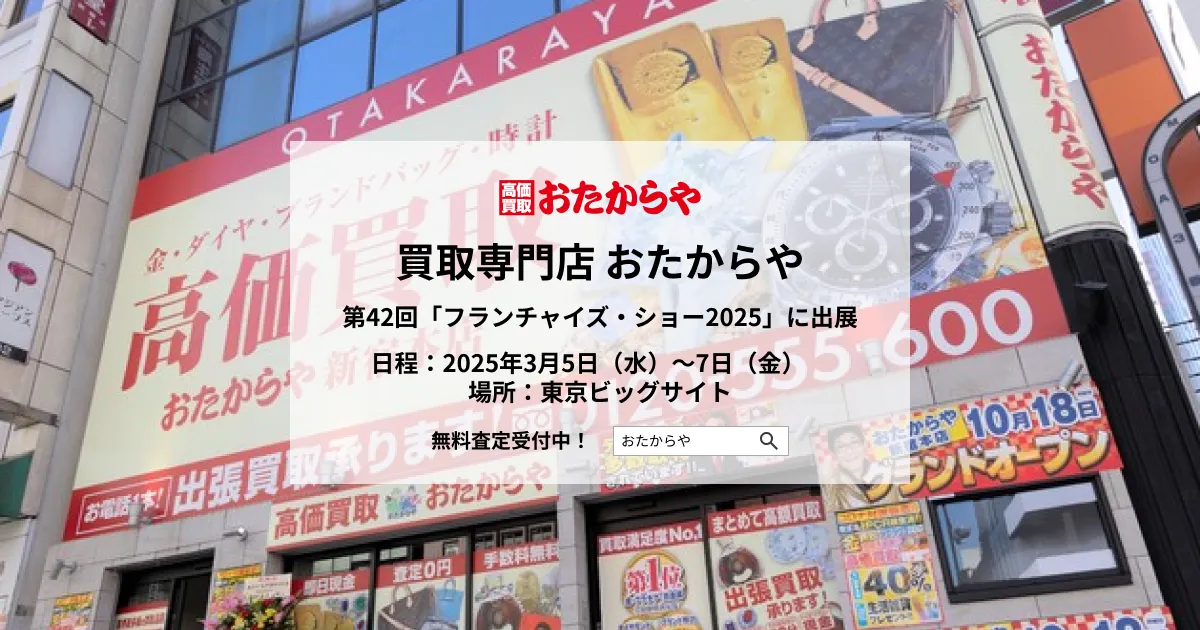 株式会社いーふらん(本社:神奈川県横浜市、代表取締役社長 鹿村大志)は、2025年3月5日(水)から7日(金)まで東京ビッグサイトで開催される「第42回フランチャイズ・ショー2025」に出展することを発表しました。同社が手掛ける「おたからや」事業に注目が集まります。