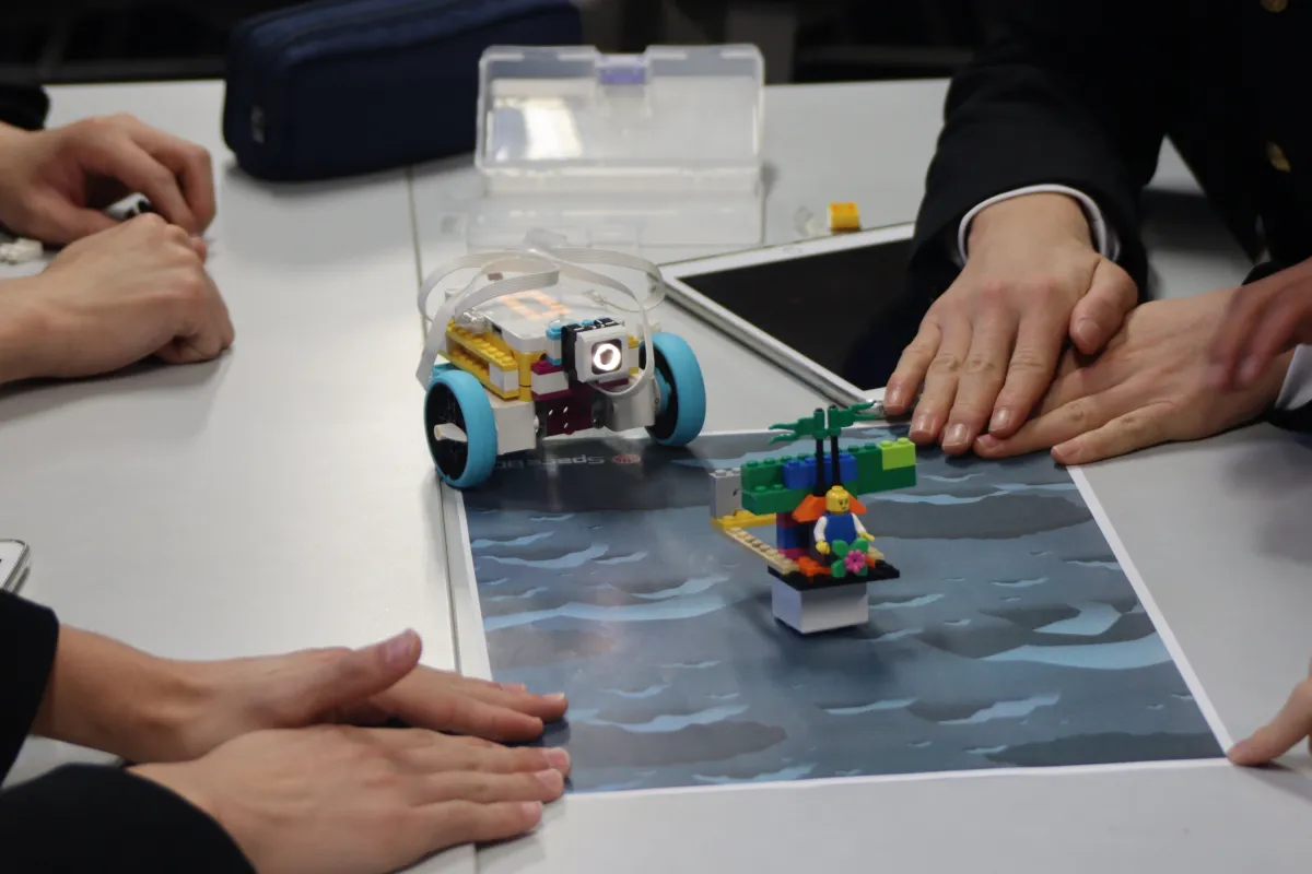 ESECの月極域探査機をテーマにしたこのワークショップでは、参加者がブロックでできた模擬人工衛星をプログラミングして操作します。障害物を回避しながら、水氷を見つけるというミッションに挑戦します。プログラミングやセンサを使用して、リアルな宇宙探査を偽体験できることが魅力です。