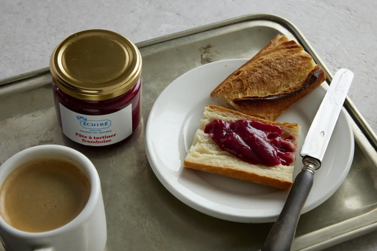 エシレ・メゾン デュ ブールでは、フランス人が愛してやまないフランボワーズを使い、新たに開発したこのペーストは、特にそのバターの濃厚さとフランボワーズのフルーティーな味わいを引き立てることを目指しています。フランボワーズ特有の酸味が、濃厚なバターと相まって、深い余韻を持つ味わいを生み出しました。