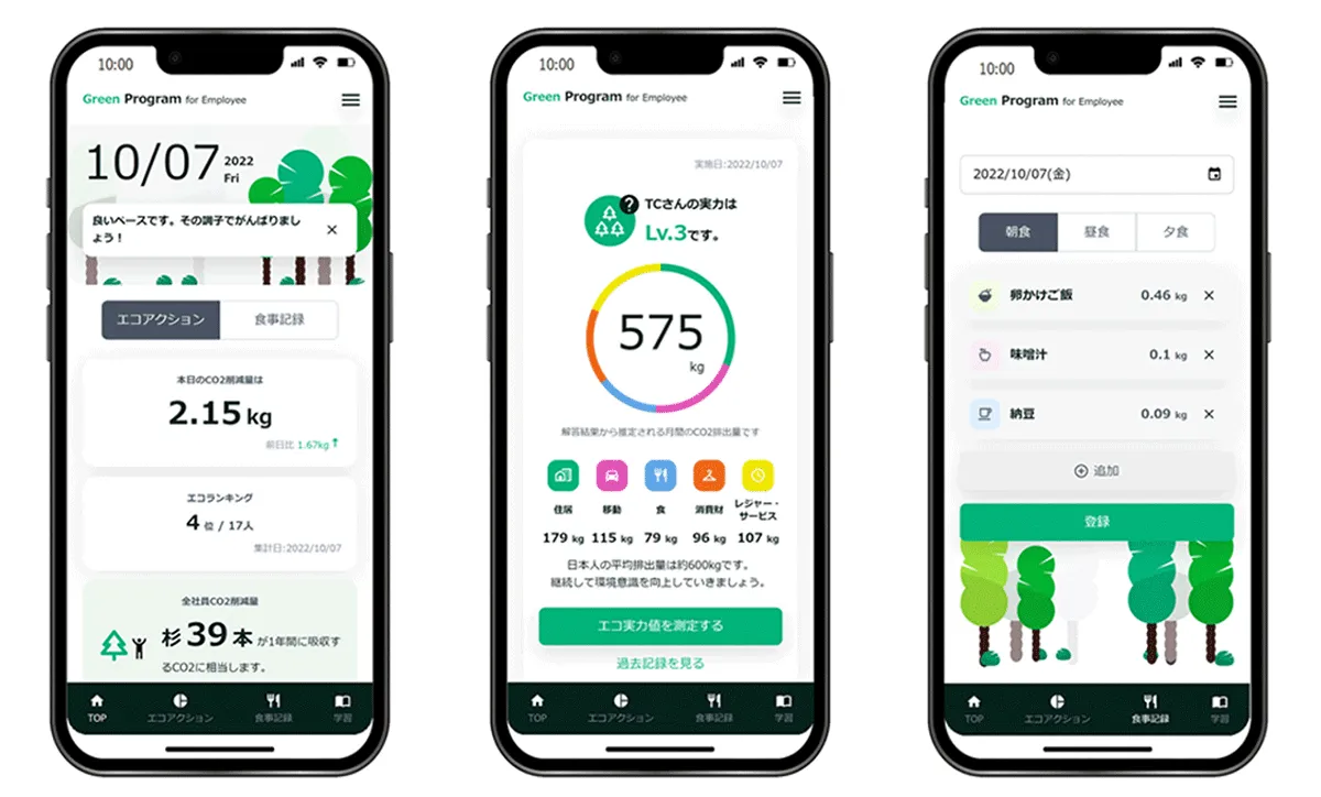 このアプリケーション「Green Program(R) for Employee」は、環境省が提唱する「ゼロカーボンアクション30」に基づき、日常的に実践可能な環境配慮行動を提供します。従業員は自らの行動をアプリに登録することで、CO2削減量を可視化し、日々の環境意識を高めていくことが目指されています。