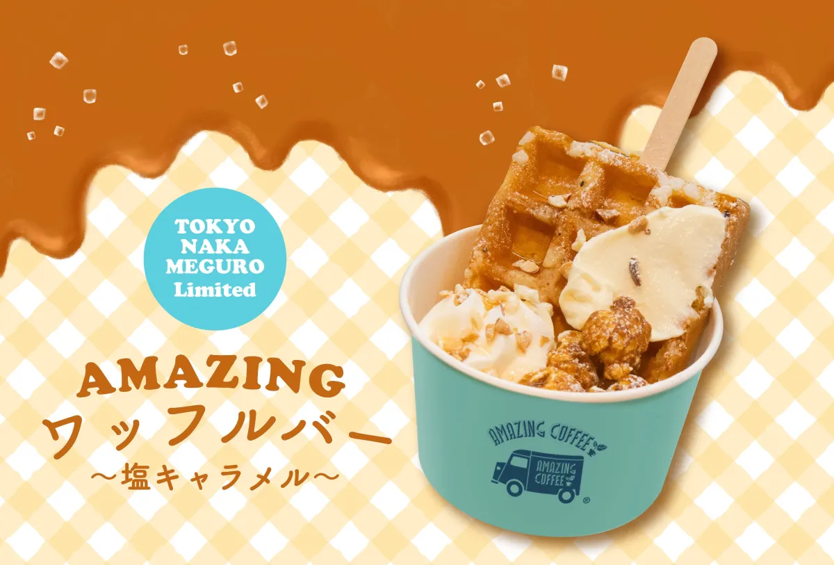 新メニューの第一弾として登場するのは、その名も『AMAZING ワッフルバー 〜塩キャラメル〜』です。焼き立てのワッフルにオリジナルの塩キャラメルソースをたっぷりとトッピングし、さらにホイップクリームを添えたこの一品は、まさに絶品。目黒川を散策しながら、コーヒーと共に楽しむのがオススメです。カフェの洗練された雰囲気の中で、じっくりと味わっていただけるでしょう。